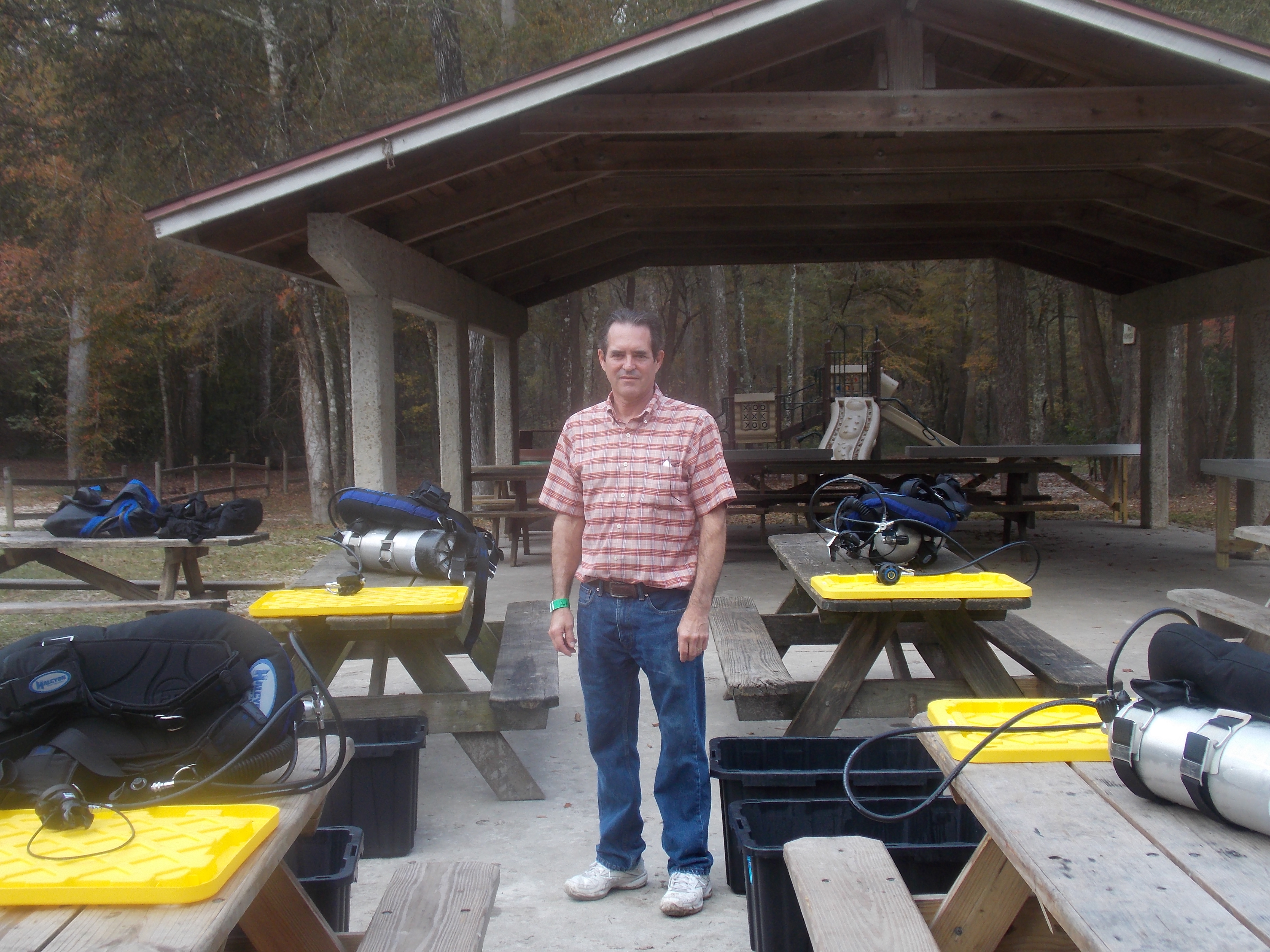 H&R SCUBA CLASS – Ginnie Springs Open Water (December 2013) Posted on December 13, 2013 by H&R SCUBA Instructor Howard standing among his students assembled Scuba Diving gear while the students are away putting on their wetsuits getting ready for their Open Water Scuba Diving class at Ginnie Springs! (Photo by H&R SCUBA) Share this: Click to share on X (Opens in new window) X Click to share on Facebook (Opens in new window) Facebook Like Loading... Related