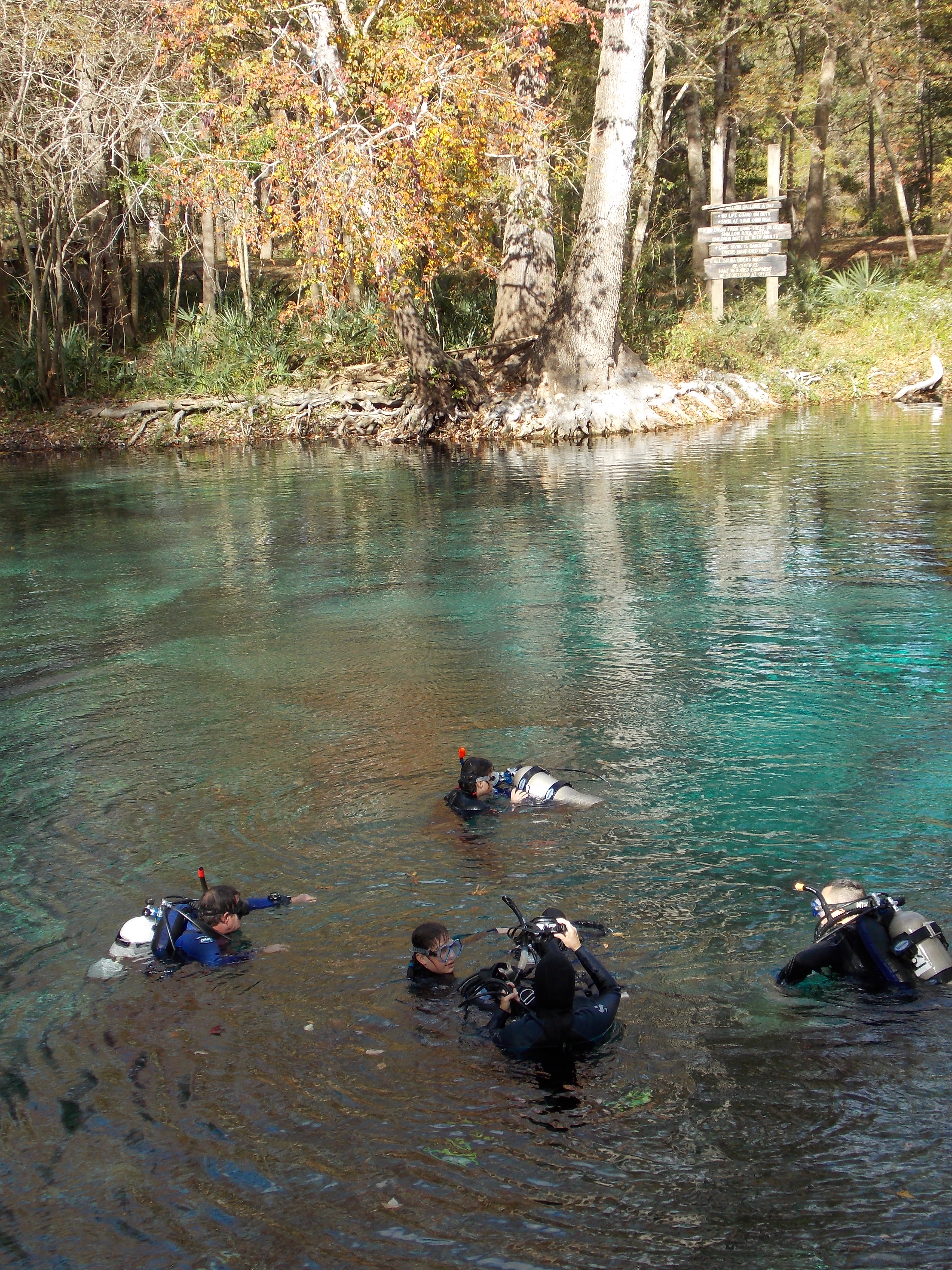 H&R SCUBA CLASS – Ginnie Springs Open Water (December 2013) Posted on December 13, 2013 by H&R SCUBA Paul, Janele, Mary Beth, Thia, removing and replacing their Scuba Gear (Unit) during Class. They did great! Instructor Howard on left. (Photo by H&R SCUBA) Share this: Click to share on X (Opens in new window) X Click to share on Facebook (Opens in new window) Facebook Like Loading... Related