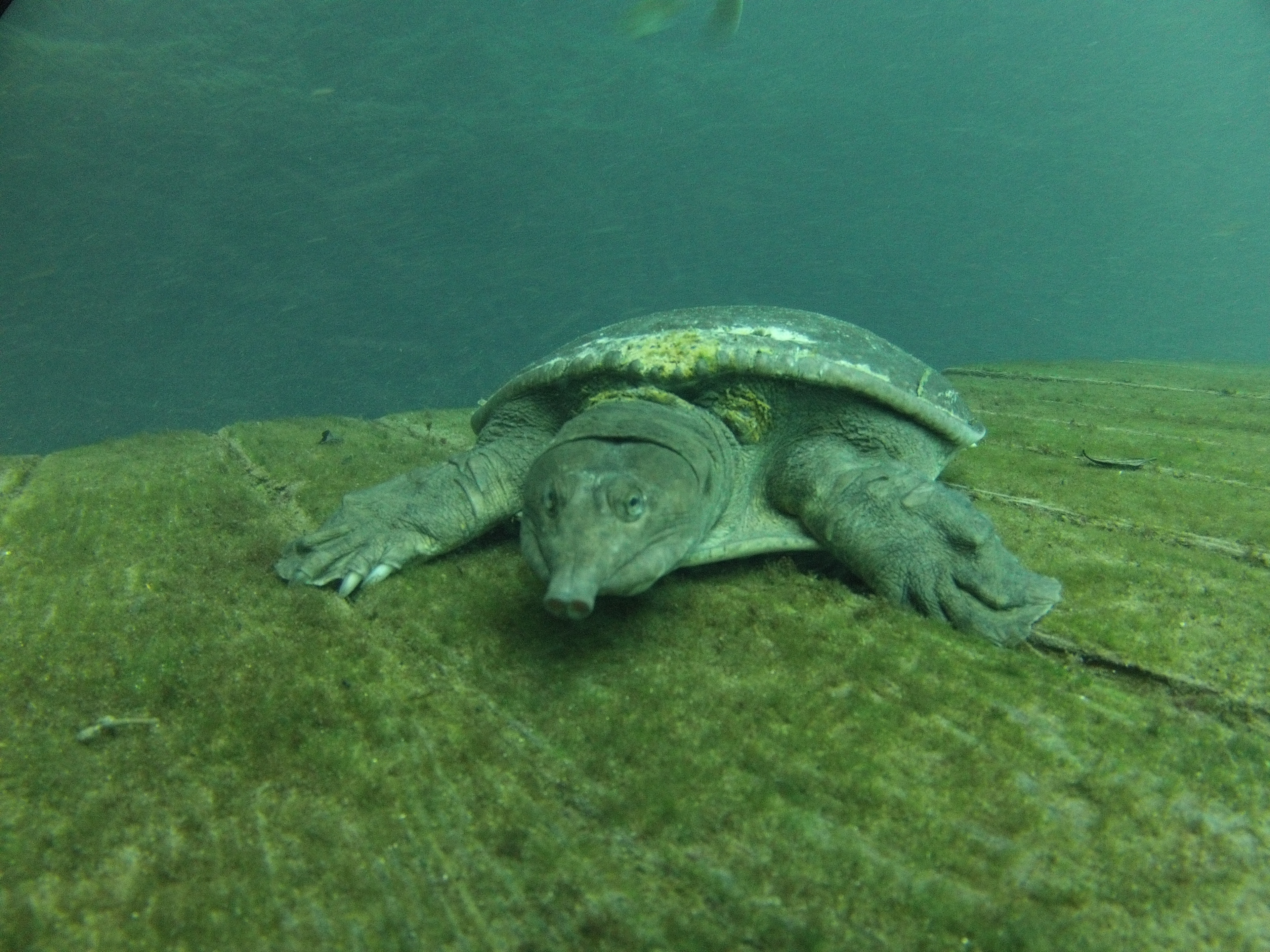 A friendly Turtle underwater at Blue Grotto Sink is well known by the Scuba Divers there. His name is “Virgil” and he likes to come over to the divers and say HI! 🙂