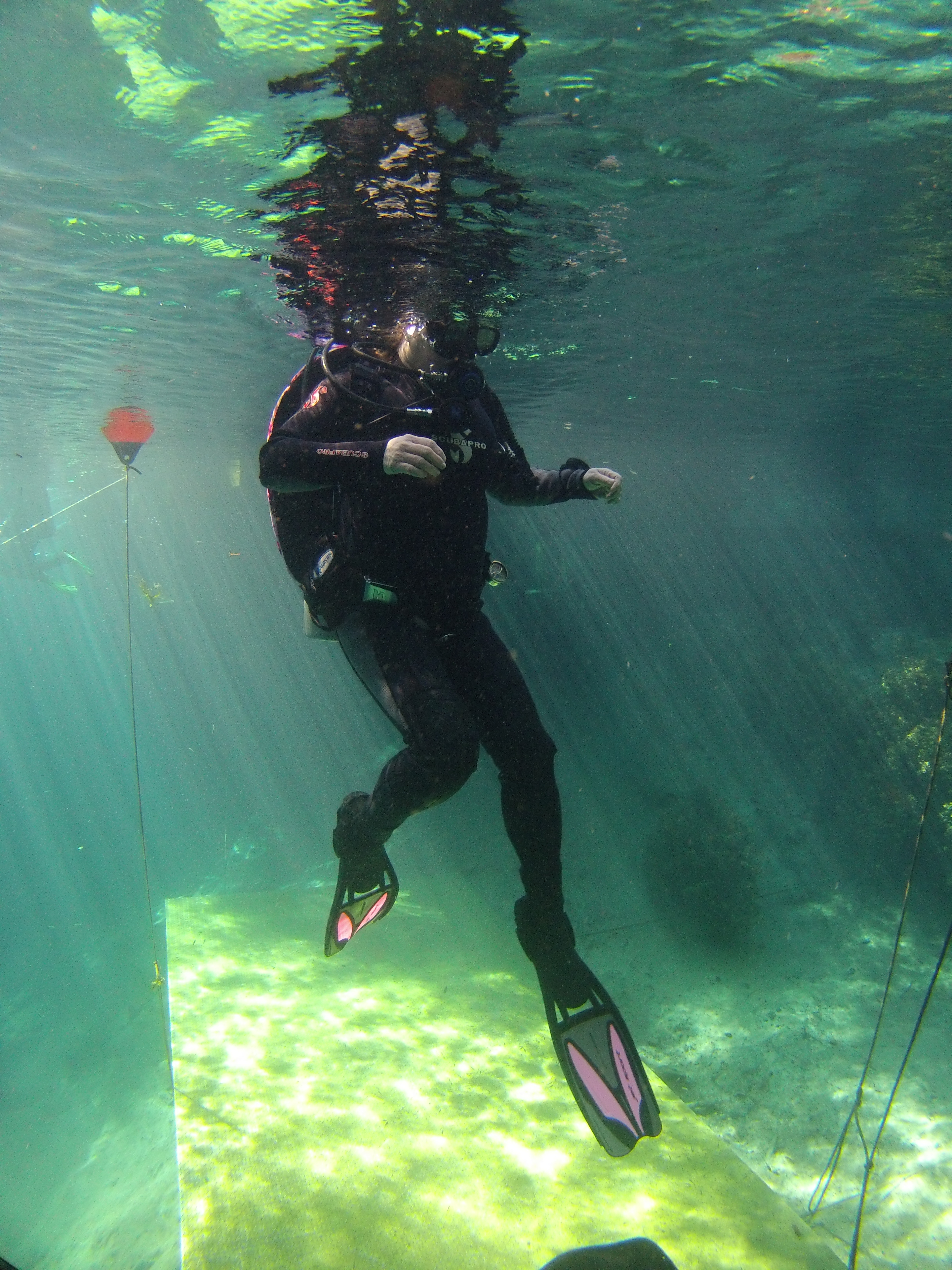 F.U.N. Dive – Scuba Diving at Blue Grotto Sink – May 2014 Posted on May 21, 2014 by H&R SCUBA Beautiful light streaming through the water on Beverly as she starts her dive. (Photo taken by Howard Smith) Share this: Click to share on X (Opens in new window) X Click to share on Facebook (Opens in new window) Facebook Like Loading... Related
