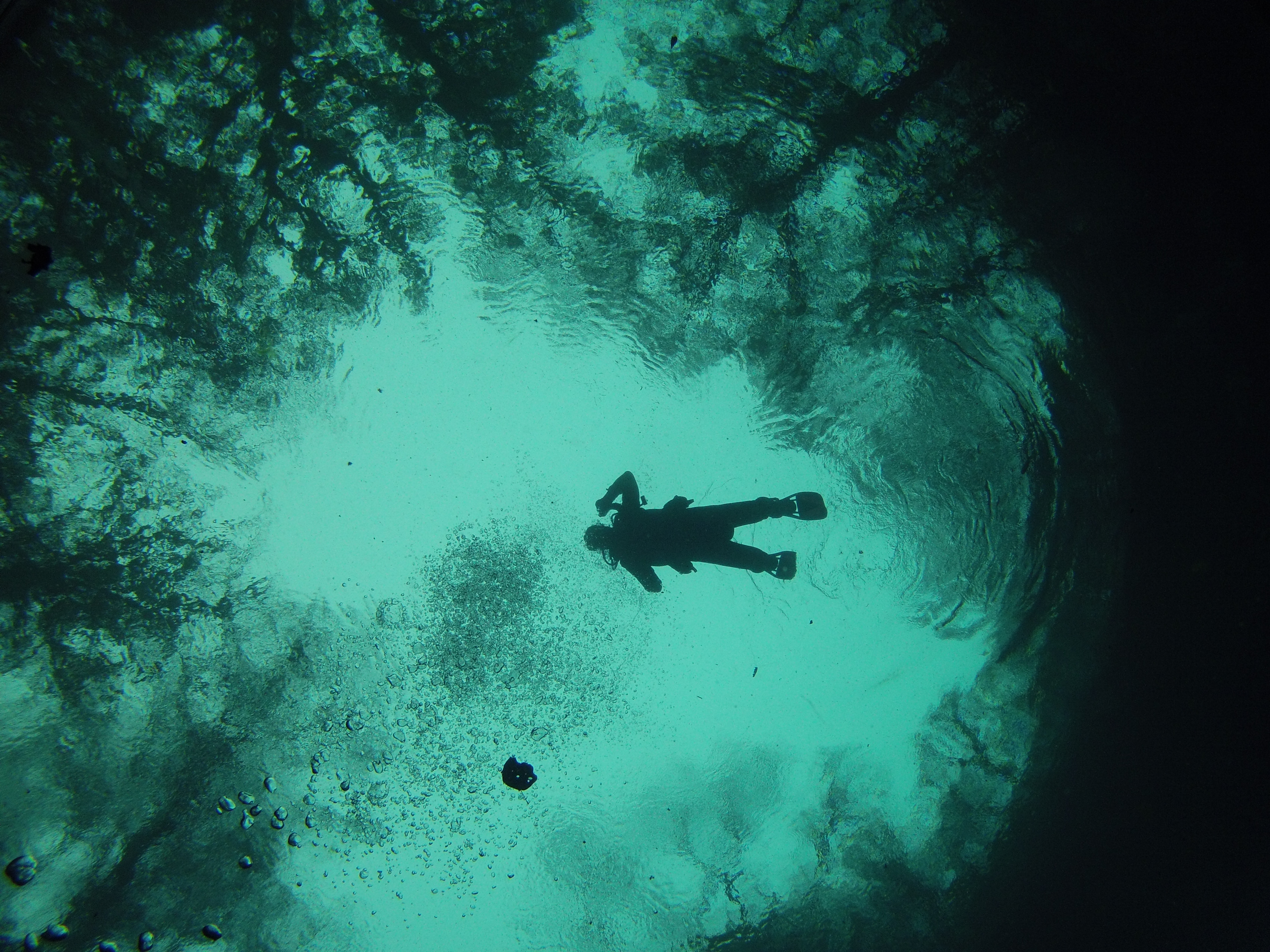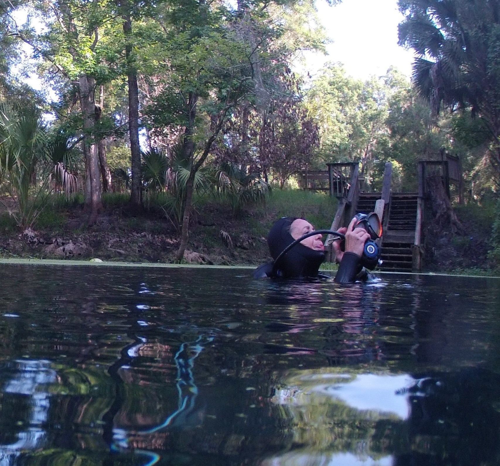 Darlene in water and Ken on steps. Ken is a Scuba Instructor and Cave Diver. Ken & Nicki had plans to Scuba Dive in ocean today but decided to dive with us in Spring instead. So glad they joined us!