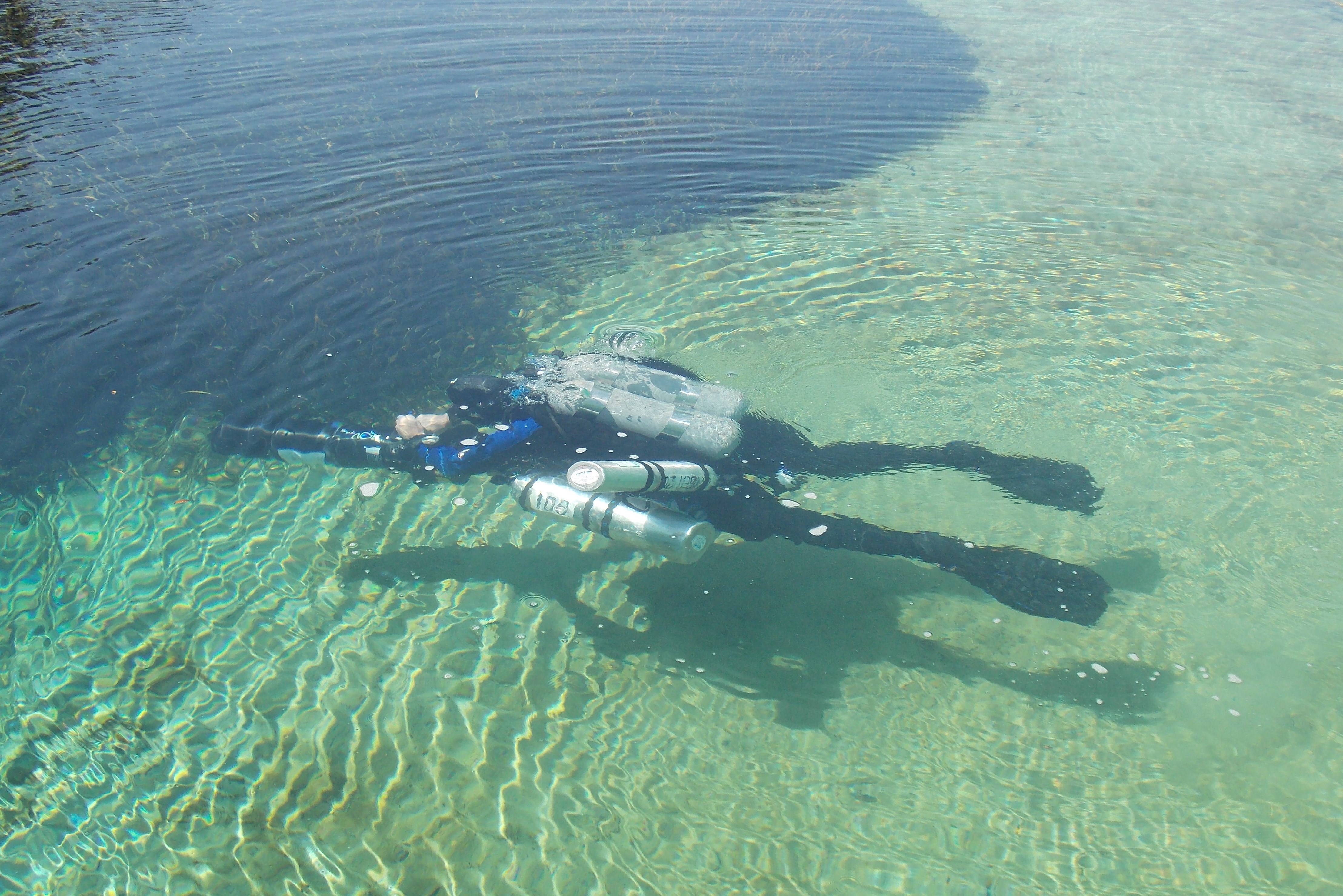 Ginnie Springs – Howard Posted on September 13, 2013 by H&R SCUBA Howard with Scooter preparing to Cave Dive at Ginnie Springs. (Photo by Ken)