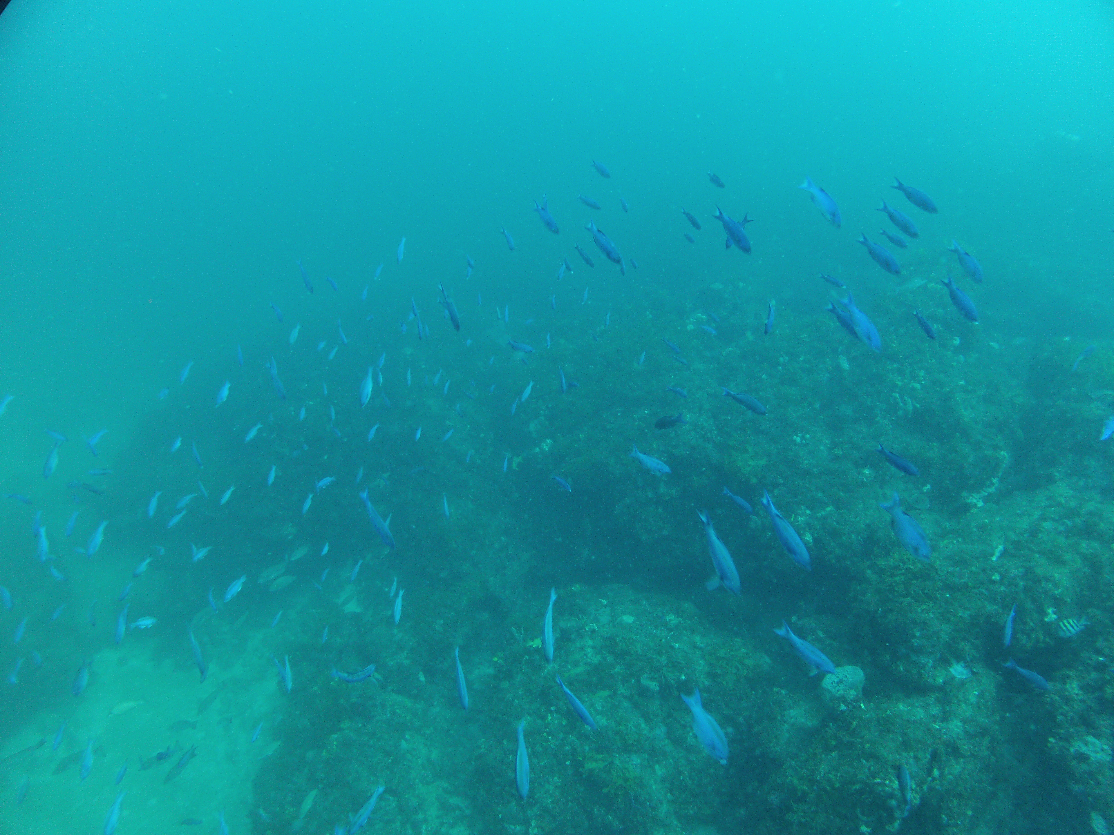 Jupiter FL Boat Dive-August 2014 Posted on August 30, 2014 by H&R SCUBA School of beautiful blue fish in the ocean.